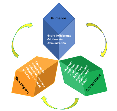 Nota: La figura muestra los aspectos que inciden en el cambio, señalando que se deben tener en cuenta tres factores bien diferenciados: los humanos, estructurales y tecnológicos.