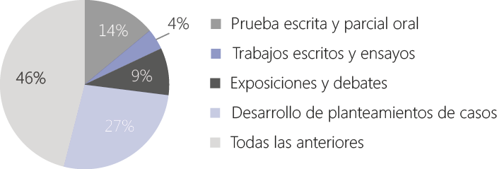 Por su parte, se indagó a los encuestados sobre las estrategias que se implementan en las IES para evaluar o valorar los rendimientos académicos, concluyendo que la diversidad en lo métodos (las pruebas escritas, trabajos escritos, exposiciones, debates), arroja buenos dividendos respecto a al rendimiento académico y la disminución de la percepción de la monotonía en el sistema de evaluación.