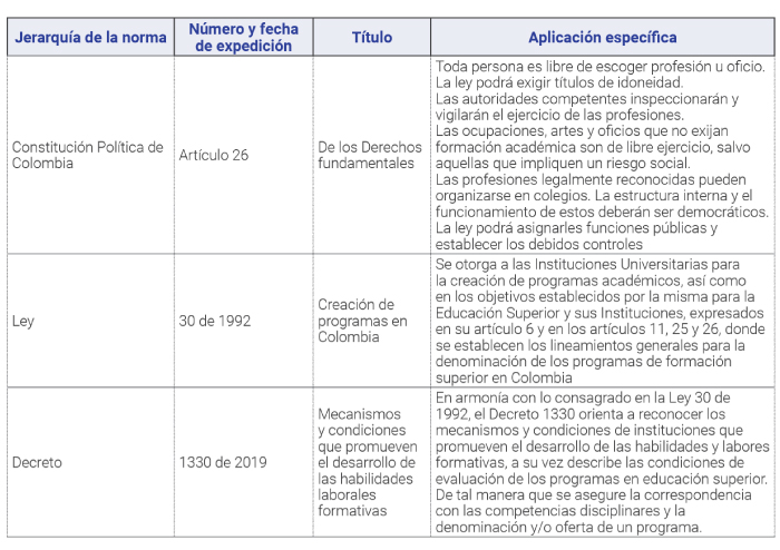 Tabla 4. Normograma nacional que rige desde el MEN para los programas de pregrado.